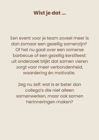 Bewust beperkt aantal events per jaar. Jullie verdienen onze volle aandacht.